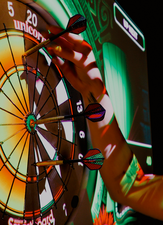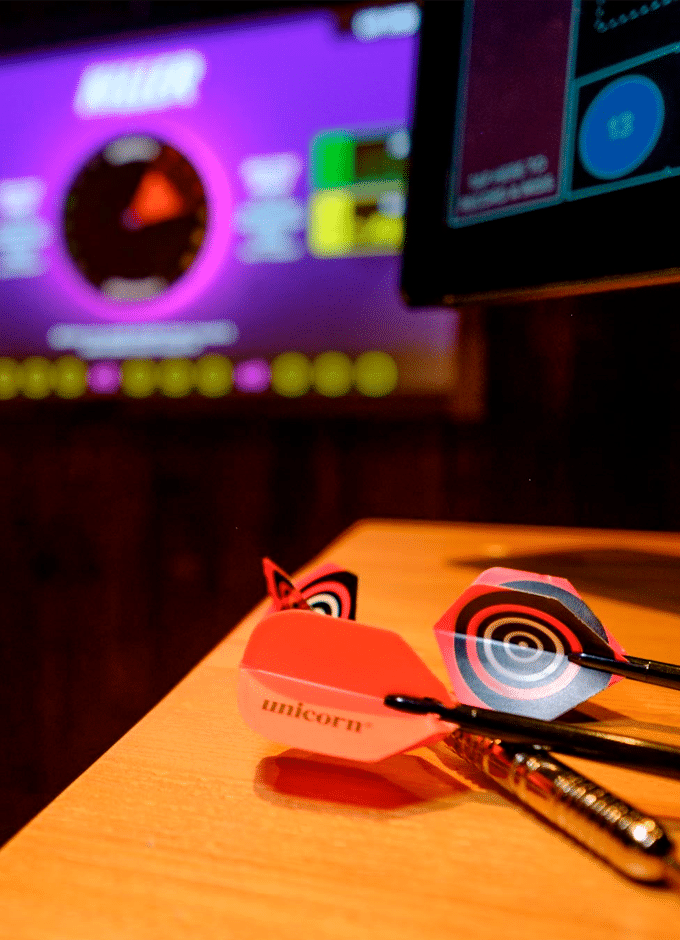 Vores dart er en avanceret udgave af det populære pilespil. På de interaktive dartskiver er mulighederne mange, om du er til de traditionelle spil som 301/501/701 eller til de mere avancerede spil. Din score bliver registreret så snart pilene rammer – alt imens kan du og dine venner nyde en specialøl eller en lækker cocktail.