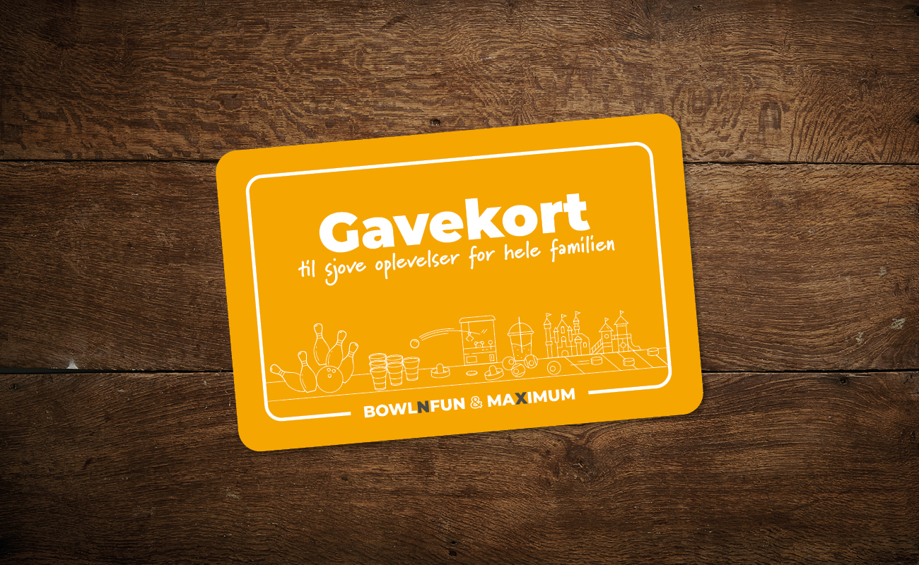 Gør gaveindkøbet nemt: Giv et gavekort til Bowl’n’Fun & Maximum – gavekortet til en verden af sjov og hygge.